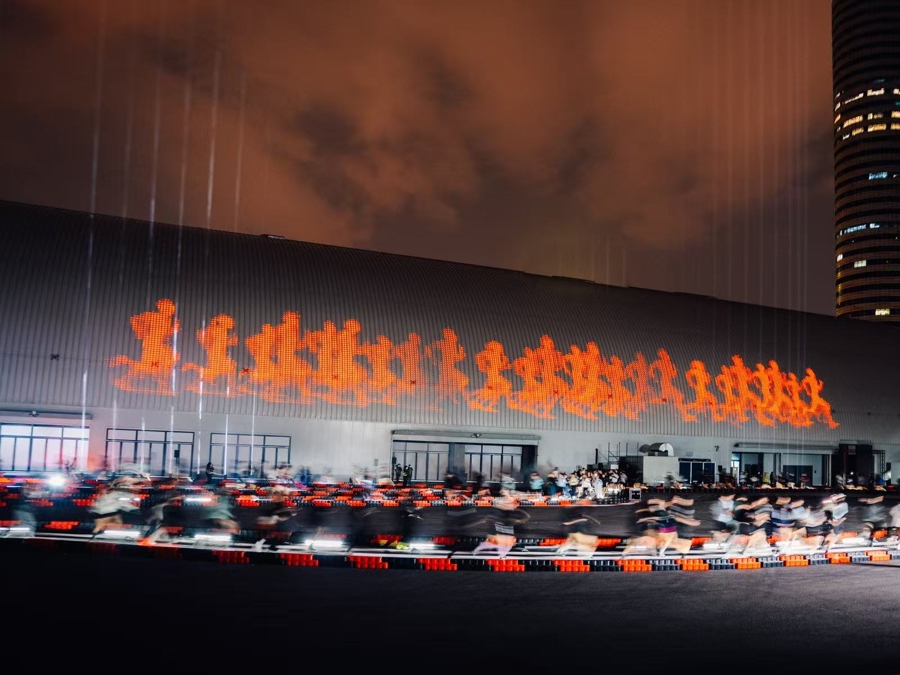 在由运动员领跑、百名精英跑者共同参与的3公里主题冲刺中,跑者的实时心率与步频数据联动现场灯光与音乐。当集体心率达到预设阈值时,现场触发“竞速美学音乐舞台”,跑步由此升华为一场集体的“速度”艺术共创。