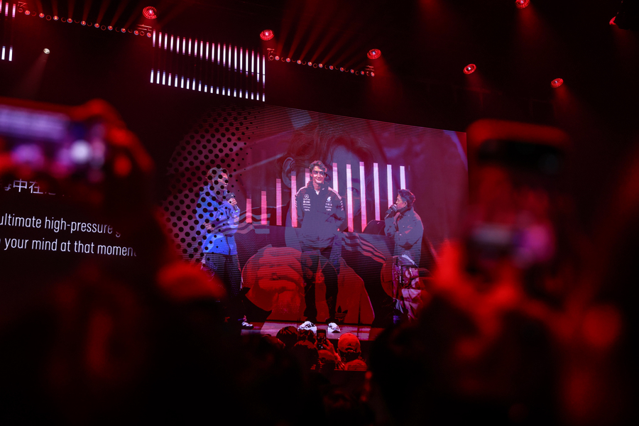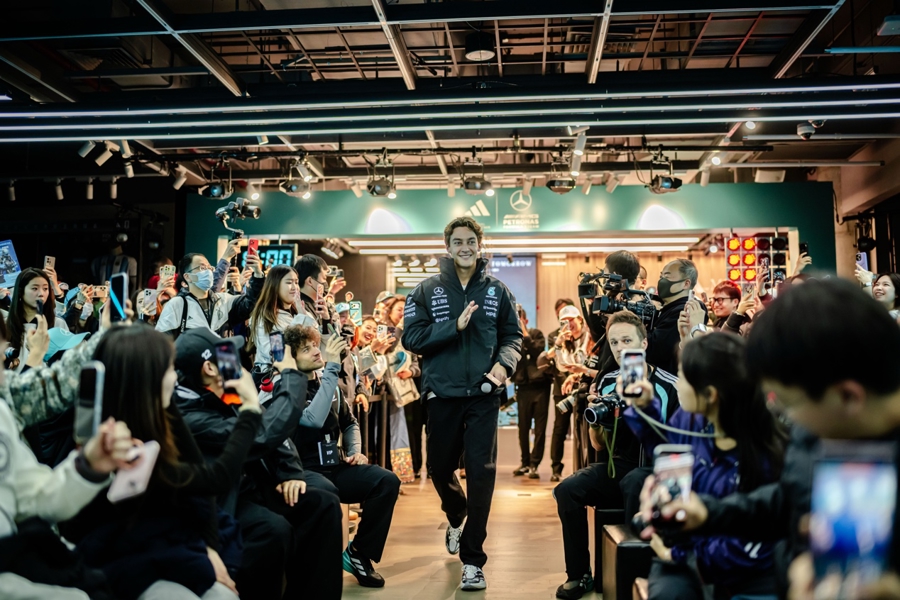 同日下午,阿迪达斯上海南京东路品牌中心迎来F1车手拉塞尔“驭见未来”车迷见面会。(主办方供图)